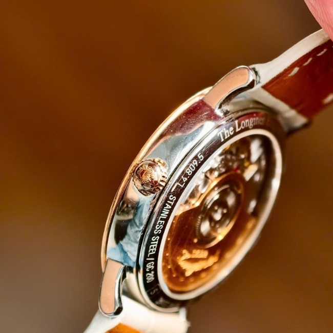 Không chỉ dừng lại ở vẻ ngoài, Longines L4.809.5 còn gây ấn tượng với bộ máy vận hành bên trong. Đồng hồ được trang bị bộ máy automatic chất lượng cao, mang lại độ chính xác ổn định và khả năng hoạt động bền bỉ. Đây là yếu tố quan trọng giúp Longines duy trì vị thế của mình trong ngành công nghiệp đồng hồ Thụy Sĩ suốt nhiều thập kỷ. Khả năng trữ cót tốt giúp người dùng yên tâm sử dụng mà không cần lên dây cót thường xuyên, mang lại sự tiện lợi tối đa trong cuộc sống hàng ngày.