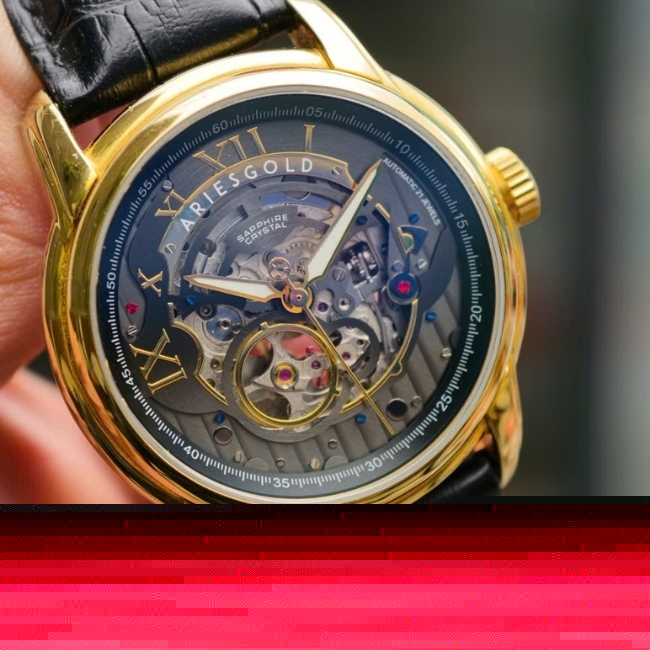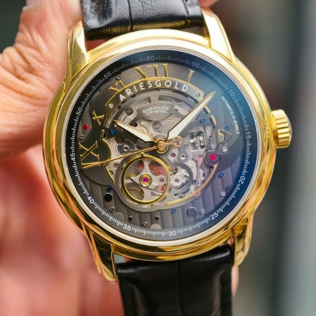 Aries Gold Skeleton – lộ máy xuyên thấu – Miyota Nhật Bản