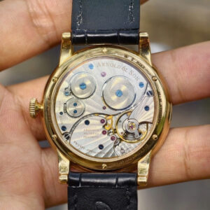 Bên trong đồng hồ là bộ máy cơ lên cót tay A&S1021 in-house, được phát triển và hoàn thiện hoàn toàn tại xưởng chế tác của Arnold & Son ở La Chaux-de-Fonds. Bộ máy sở hữu khả năng trữ cót lên đến 90 giờ, mang lại hiệu suất vận hành bền bỉ và chính xác. Các chi tiết được trang trí Côtes de Genève, vân tròn và cầu máy skeleton tinh xảo có thể chiêm ngưỡng qua mặt lưng sapphire trong suốt.