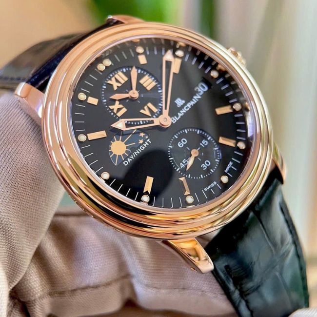 Blancpain Leman 2160-3630-53B mặt đen Vàng khối 18k