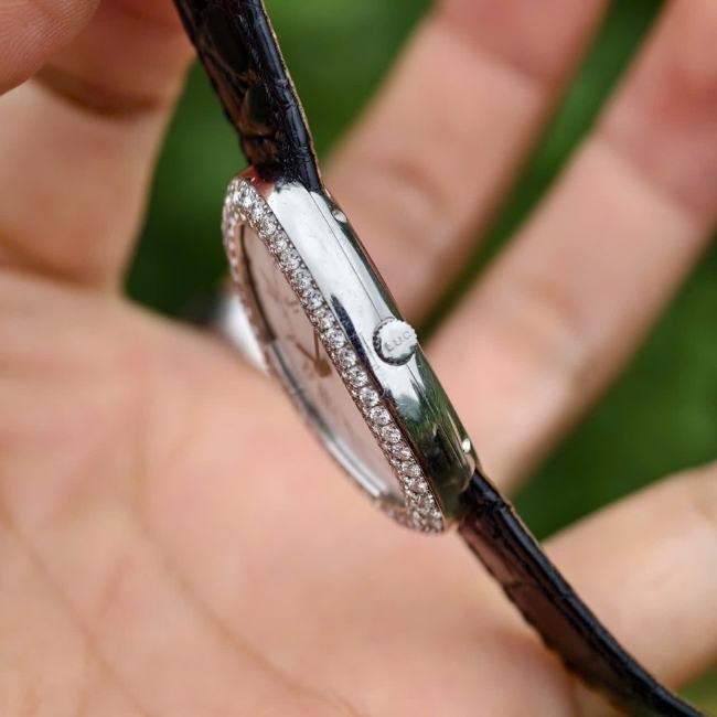 • Thân vỏ: Vàng trắng đúc 18k + Kim cương