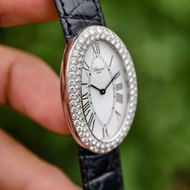 Chopard Baignoire 5107 Oval Vàng trắng 18k Diamond 24mm