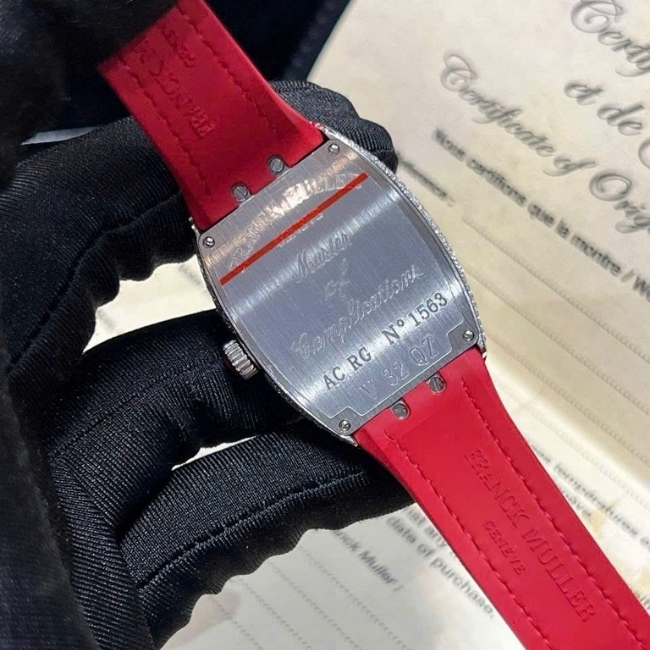 Chất liệu sử dụng trong Franck Muller Lady Heart thường là vàng hồng 18K, thép không gỉ cao cấp hoặc phiên bản đính kim cương xa xỉ. Dây da cá sấu mềm mại hoặc dây kim loại sang trọng giúp tôn lên vẻ quý phái, đồng thời mang lại cảm giác đeo thoải mái suốt ngày dài. Sự kết hợp hài hòa giữa thiết kế nghệ thuật và chất liệu cao cấp khiến mẫu đồng hồ này trở thành lựa chọn hoàn hảo cho những dịp quan trọng như tiệc tối, sự kiện hoặc kỷ niệm đặc biệt.