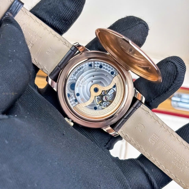 Bên trong FC-724CC4H4 là bộ máy automatic in-house do Frederique Constant phát triển. Đây là điểm cộng lớn bởi không phải thương hiệu nào trong phân khúc cũng sở hữu bộ máy tự sản xuất. Bộ máy vận hành ổn định, độ chính xác cao và thời lượng trữ cót ấn tượng, đáp ứng tốt nhu cầu sử dụng hằng ngày cũng như giá trị sưu tầm lâu dài.