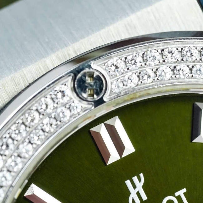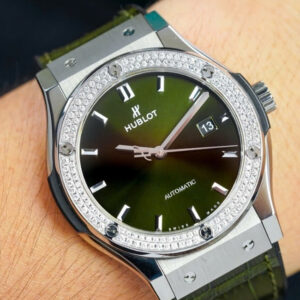 Hublot Classic Titanium Pave full Diamond- mặt xanh lá 42mm