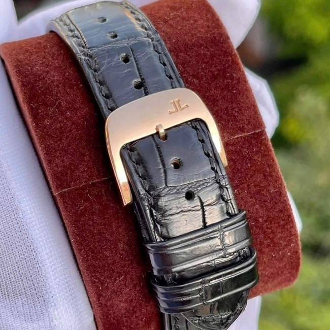 Dây đeo da cao cấp, thường là da cá sấu, mang lại cảm giác đeo êm ái và tăng thêm vẻ lịch lãm. Thiết kế này giúp đồng hồ Jaeger-LeCoultre mặt trắng dễ dàng kết hợp với trang phục công sở, vest hoặc các dịp trang trọng.