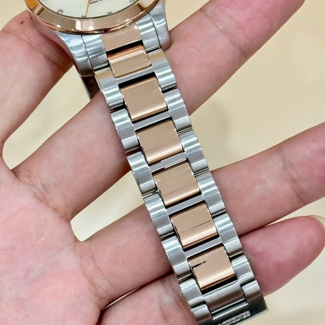 • Thân vỏ: Thép 316L + Vàng hồng 18K + Diamond