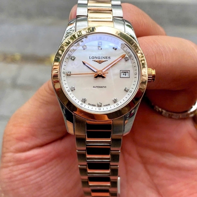 Longines Conquest mặt xà cừ vân mây – cọc số kim cương