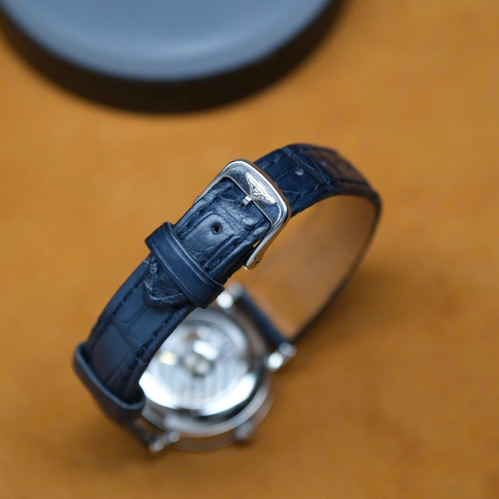 | Dây đeo | Dây da cá sấu màu xanh đậm |