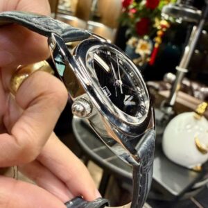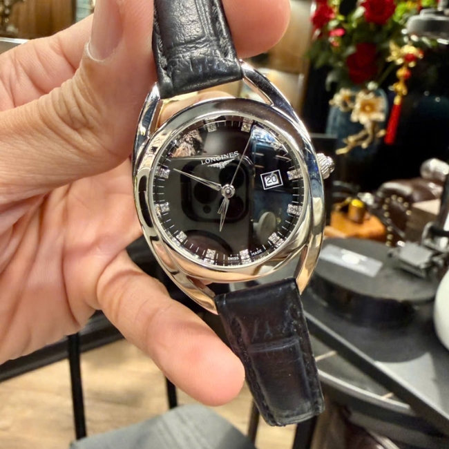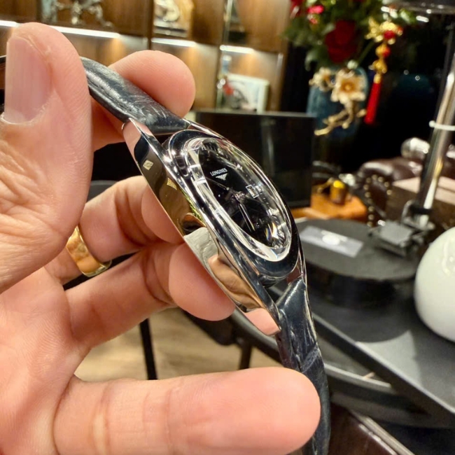 Điểm nổi bật của Longines L6.137.4.57.0 nằm ở mặt số màu đen huyền bí, tạo chiều sâu cuốn hút ngay từ ánh nhìn đầu tiên. Trên nền dial tối, các cọc số được hoàn thiện tinh xảo, một số phiên bản còn đính đá giúp tăng thêm vẻ sang trọng và nữ tính. Thiết kế tổng thể mang đậm dấu ấn đặc trưng của Longines – tối giản nhưng đầy tinh tế, dễ dàng kết hợp với nhiều phong cách thời trang khác nhau.