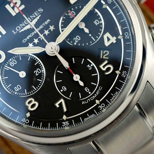Longines L3.820.4.53.6 sở hữu mặt số đen cá tính kết hợp cùng cọc số và kim phủ dạ quang Super-LumiNova, đảm bảo khả năng hiển thị rõ ràng trong điều kiện thiếu sáng. Vành bezel xoay một chiều bằng gốm ceramic chống trầy xước không chỉ tăng độ bền mà còn tạo điểm nhấn hiện đại cho tổng thể thiết kế. Kích thước mặt 39mm cân đối, phù hợp với nhiều cỡ cổ tay, đặc biệt là những ai yêu thích đồng hồ thể thao vừa vặn, không quá to.