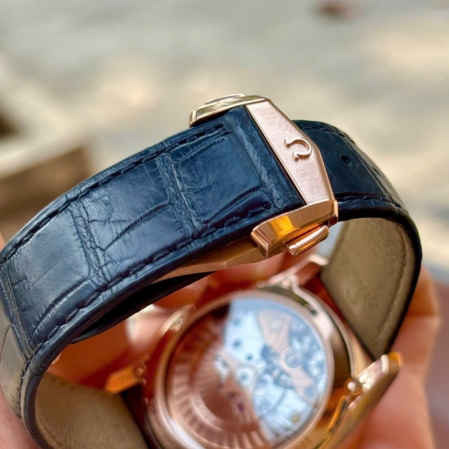 Khác với đồng hồ mạ vàng hay bọc vàng, đồng hồ Omega vàng đúc được chế tác từ vàng nguyên khối 18k, bao gồm vỏ, niềng và nắp đáy. Hàm lượng vàng cao không chỉ mang lại vẻ ngoài sang trọng mà còn tạo nên giá trị vật chất rõ ràng, giúp chiếc đồng hồ luôn có mức giá nền ổn định theo biến động của thị trường vàng.