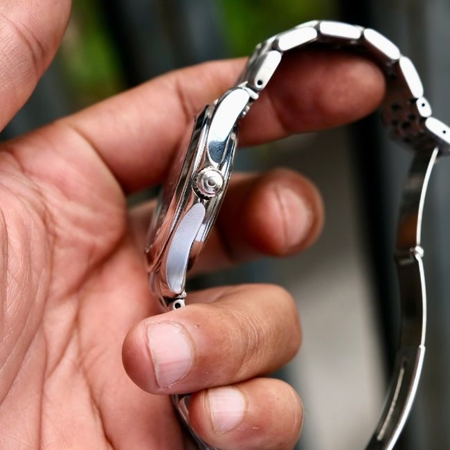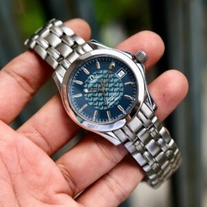 Mặt đồng hồ màu xanh dương sâu thẳm là điểm nhấn đặc biệt, tạo nên vẻ đẹp tinh tế và cuốn hút. Kim và cọc số được phủ lớp dạ quang, giúp người dùng dễ dàng xem giờ ngay cả trong điều kiện ánh sáng yếu. Viền bezel mang phong cách thể thao nhưng vẫn giữ được sự thanh lịch, phù hợp với mọi phong cách thời trang.