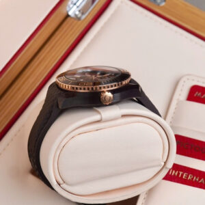 Omega 215.62.40.20.13.001 sở hữu kích thước 39.5mm – tỷ lệ lý tưởng cho những ai yêu thích đồng hồ lặn gọn gàng, ôm tay. Vỏ đồng hồ được chế tác từ vàng Sedna™ 18K, hợp kim vàng hồng độc quyền của Omega có khả năng giữ màu bền bỉ theo thời gian. Vành bezel gốm nâu tích hợp thang đo lặn Liquidmetal™ hoặc Ceragold™ mang lại độ bền cao và khả năng chống trầy xước vượt trội. Mặt số nâu chải tia sunburst đồng điệu với tổng thể thiết kế, kết hợp cọc số và kim phủ dạ quang giúp tăng khả năng quan sát trong điều kiện thiếu sáng.