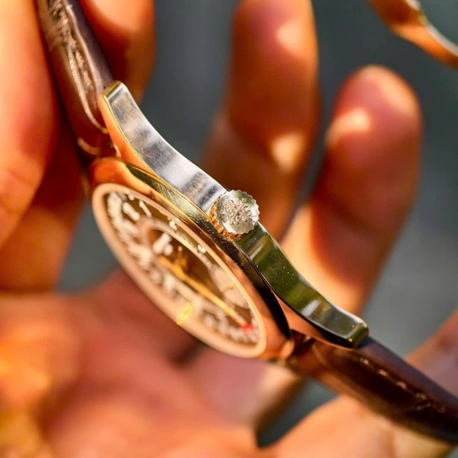 - Chất Liệu Cao Cấp: Vỏ vàng hồng 18K và kính sapphire chống trầy xước, đảm bảo độ bền và vẻ đẹp lâu dài.