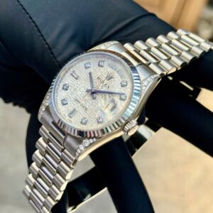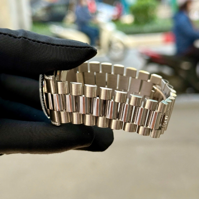 Day-Date là bộ sưu tập biểu tượng của Rolex, nổi tiếng với lịch ngày & lịch thứ hiển thị đầy đủ – thứ chỉ dành riêng cho những mẫu President. Mã tham chiếu 118339 là dòng đặc biệt, sử dụng vàng trắng 18K, tạo nên vẻ đẹp sang trọng nhưng không quá phô trương.