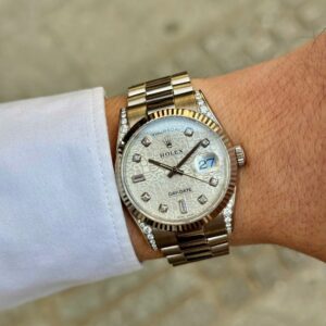 Rolex 118339 là mẫu đồng hồ thuộc dòng Day-Date 36, được chế tác từ vàng trắng 18K và trang bị vành bezel khía hoặc đính kim cương tùy phiên bản. Đây là chiếc đồng hồ mang đậm dấu ấn sang trọng, tinh tế và thể hiện đẳng cấp bậc nhất trong thế giới đồng hồ Rolex.