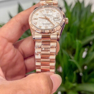 Mặt số thiên thạch, một vật liệu thiên nhiên vô cùng hiếm có và độc đáo, là kết quả của những vụ va chạm vũ trụ, mang đến những vân và hoa văn tự nhiên không giống bất kỳ chiếc đồng hồ nào. Mỗi chiếc đồng hồ Rolex mặt thiên thạch đều có những đặc điểm riêng biệt, vì không có hai viên thiên thạch nào giống nhau. Điều này khiến mỗi chiếc đồng hồ trở thành một sản phẩm thực sự độc nhất, là biểu tượng của sự tinh tế và cá tính riêng biệt của người sở hữu.