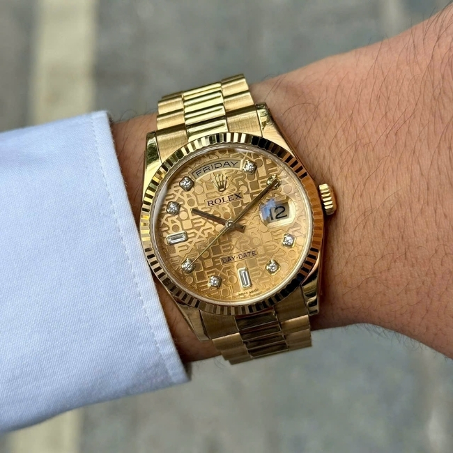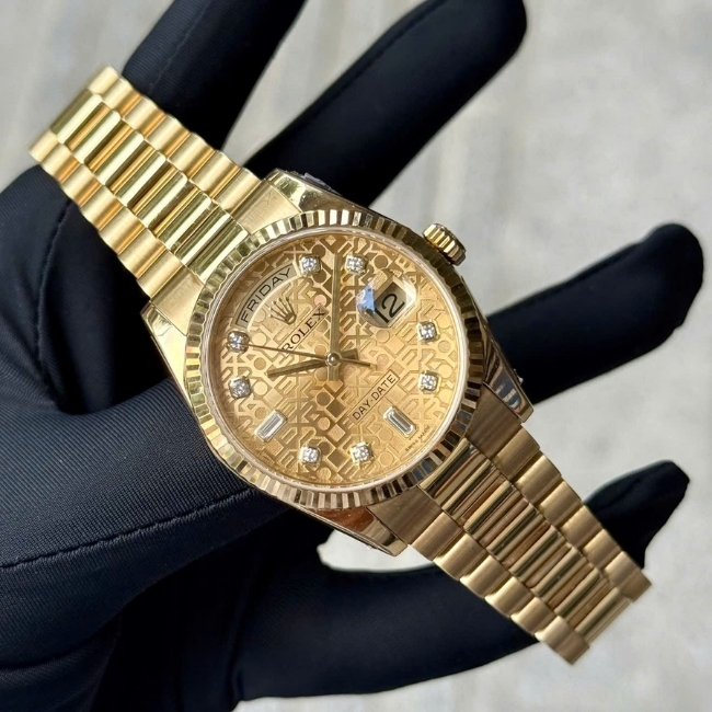 Rolex daydate Vàng đúc 18k – mặt vi tính vàng baguette 6-9