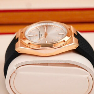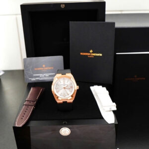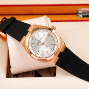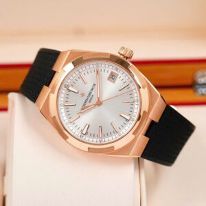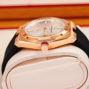 Điểm thu hút của Vacheron Constantin 4500V/000R-B127 nằm ở bộ vỏ vàng hồng 18k sang trọng, kết hợp hoàn hảo giữa các bề mặt chải xước và đánh bóng, tạo nên hiệu ứng ánh sáng ấn tượng khi đeo trên tay. Kích thước mặt số 41mm mang đến sự cân đối, phù hợp với đa số cổ tay nam giới hiện đại. Mặt số màu nâu sẫm tinh tế, được hoàn thiện dạng sunburst, giúp tăng chiều sâu và tạo điểm nhấn nổi bật khi thay đổi góc nhìn.